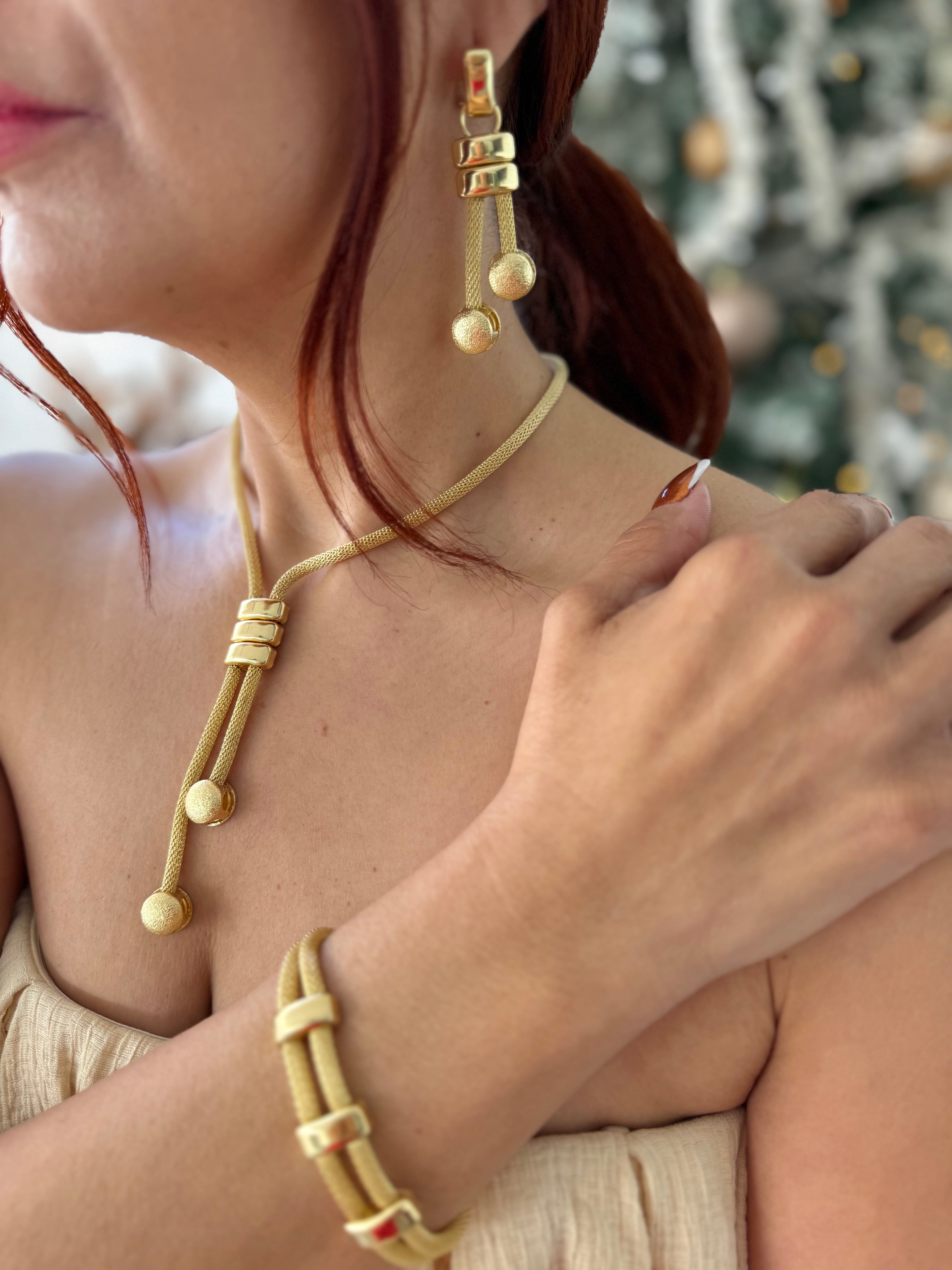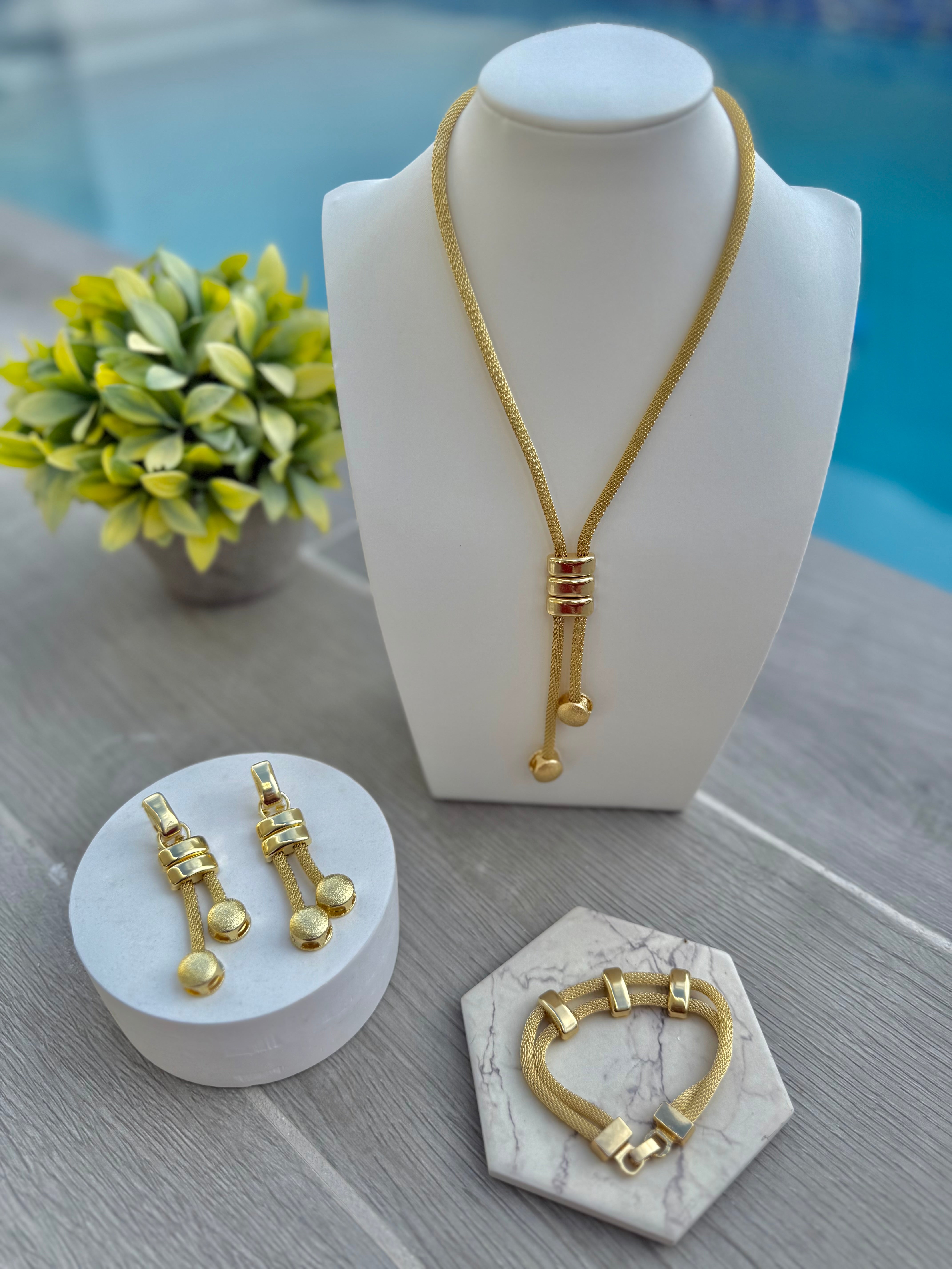 Kely set in Gold (collar, pulsera y pantallas)
