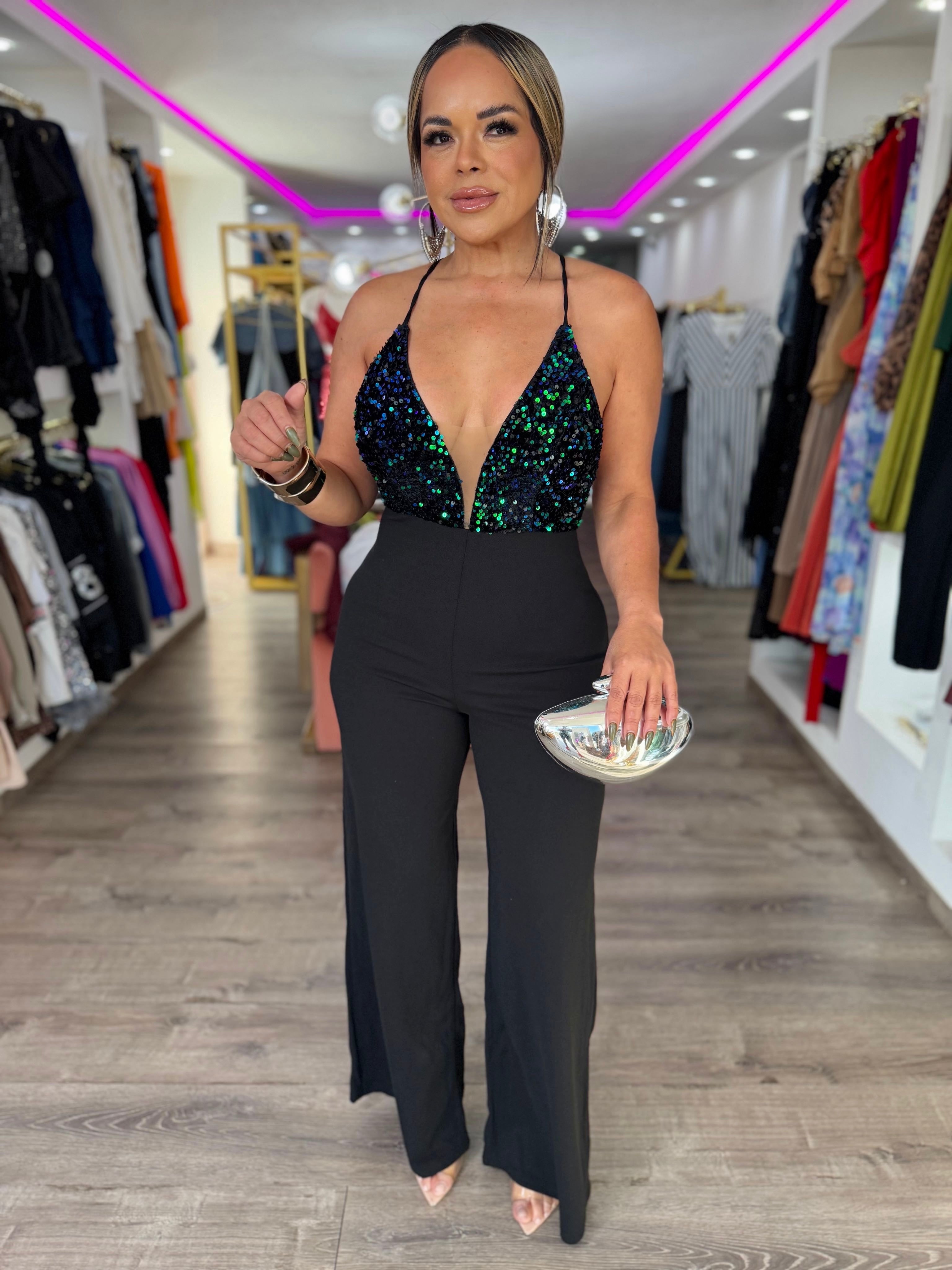Christmas Jumpsuit in Black Tornasol