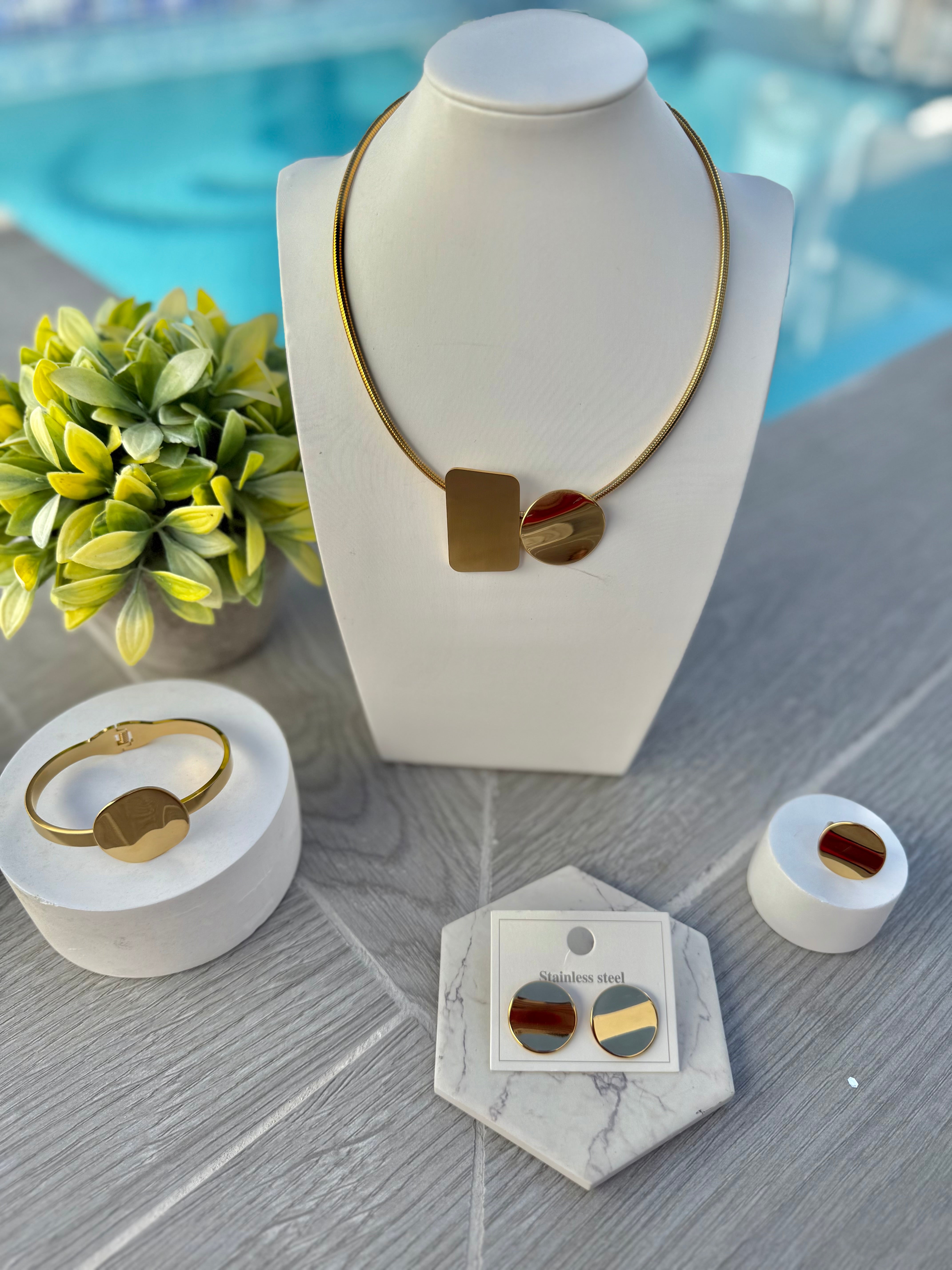 Elaini set in Gold (collar sortija, pulsera y pantallas )