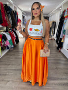 Falda color naranja con cinturón